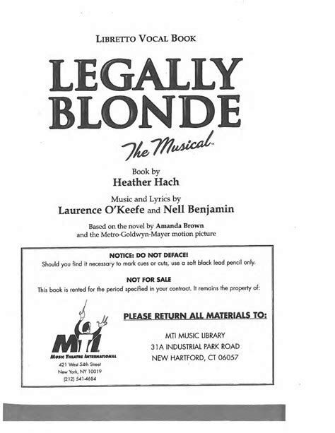 TTO - Read legally blonde musical script iBooks Internet Archive