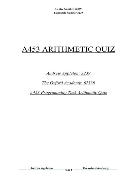 Read a453 programming project arithmetic quiz PDF PDF